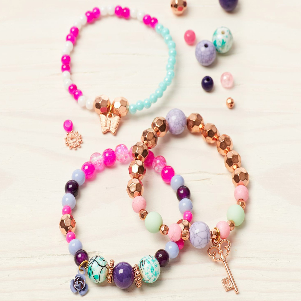 Description: Mix and Match the assortment of beads and charms to make up to 3 beautiful bracelets. Also includes full tattoo sheet with tattoos to match the bracelets! Includes elastic thread, assortment of beads and charms plus an exclusive dream guide.